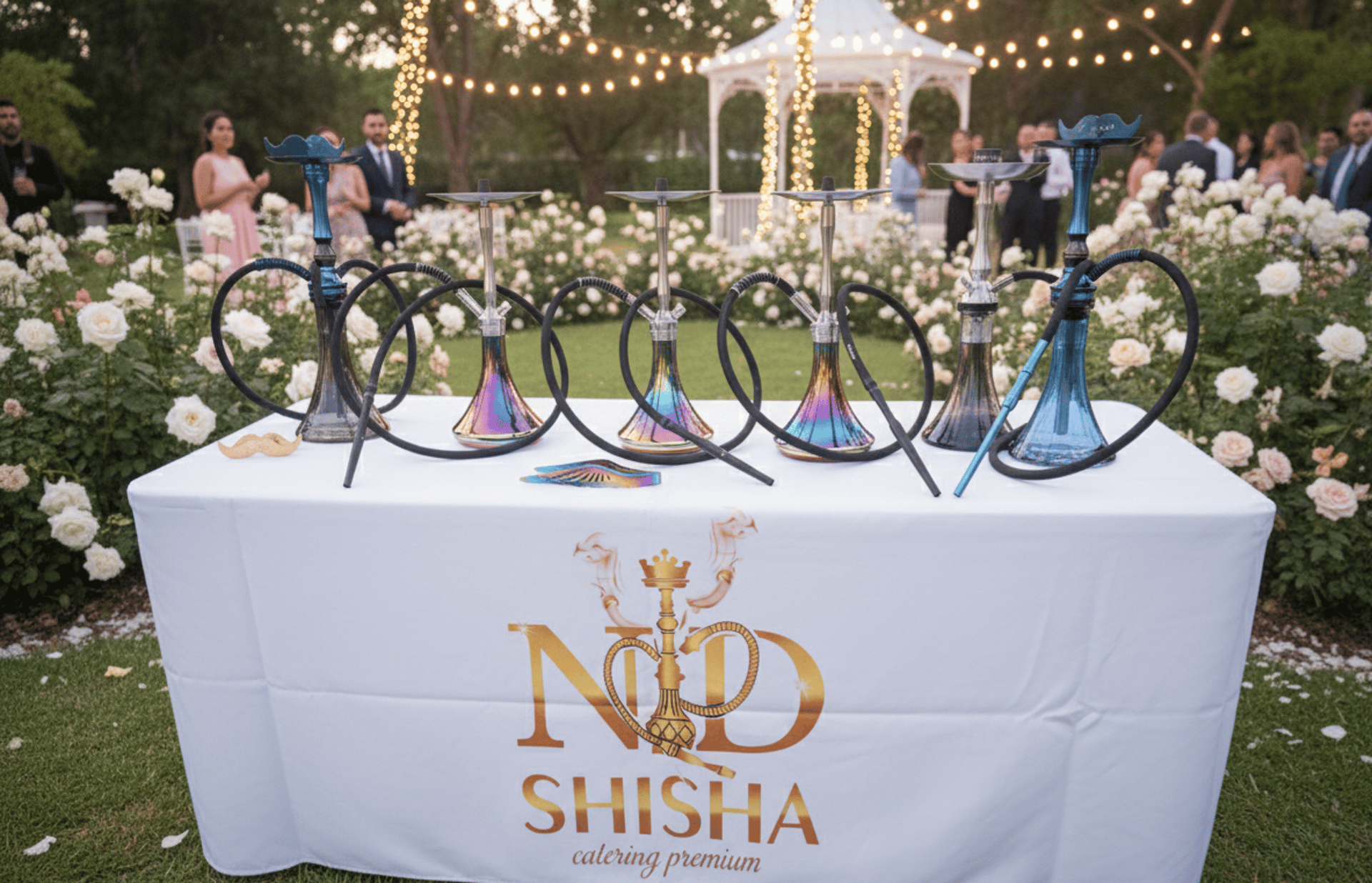 1. ¿Qué incluye exactamente el servicio de catering de ND Shisha? Nuestro servicio es llave en mano. Incluye el transporte, montaje y desmontaje, los equipos de shisha premium, el número de sabores acordados, carbones vegetales 100% naturales, y la atención constante de uno o más cachimberos profesionales durante toda la duración contratada.