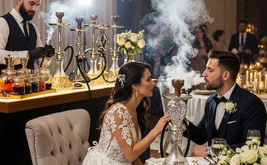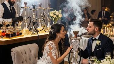 Elevad la celebración con nuestro servicio de shishas de diseño y sabores gourmet. Creamos un rincón chill-out sofisticado y elegante que será el broche de oro perfecto y un recuerdo memorable para vuestros invitados. Servicio profesional que garantiza un día inolvidable.