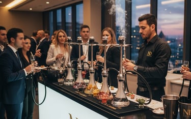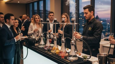 Impresiona a sus clientes con nuestro servicio de catering de shishas, es la herramienta ideal para fomentar el networking y proyectar una imagen de marca sofisticada. Configuramos elegantes lounges en congresos, lanzamientos de producto o cenas de gala, garantizando un ambiente relajado y de alta distinción para sus ejecutivos e invitados clave.