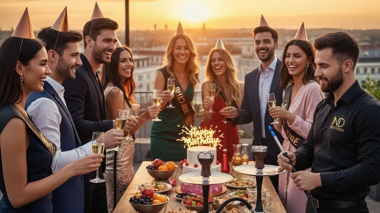 Un ambiente chill-out de categoría superior en su propia terraza, salón o jardín. ND Shisha no solo lleva una cachimba; llevamos una experiencia sensorial de lujo, haciendo de su reunión de amigos o cena familiar un momento memorable e inigualable.